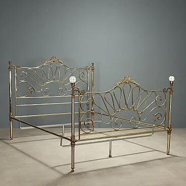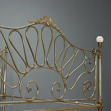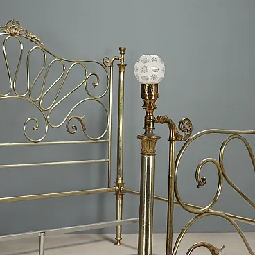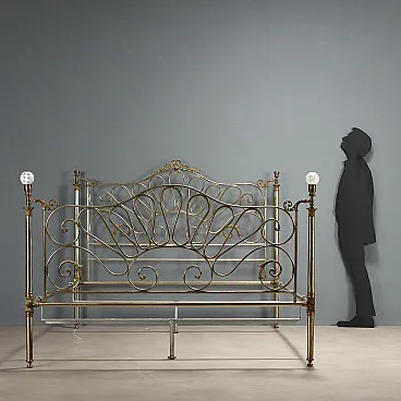 Letto in ottone e bronzo con motivi a foglie, volute e floreali, '800