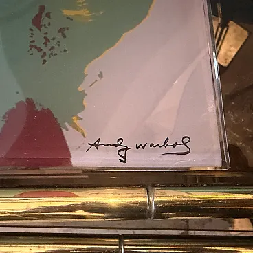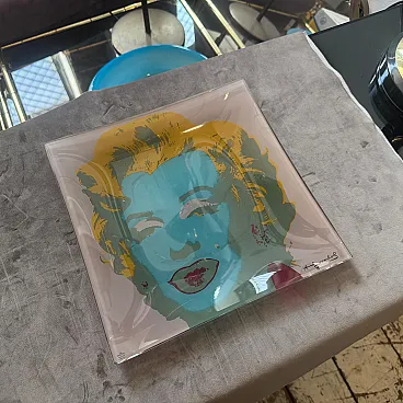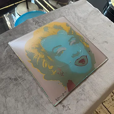Questo sorprendente vassoio vintage in vetro curvato degli anni '90 presenta l'iconica rappresentazione pop art di Andy Warhol di Marilyn Monroe, resa in un'audace e vibrante tavolozza di turchese, giallo e rosso intenso. Prodotto nell'ambito di una prestigiosa collaborazione con il produttore tedesco di porcellane e bicchieri di lusso Rosenthal, questo pezzo fonde perfettamente l'artigianato di alto livello con la leggendaria arte contemporanea. La forma quadrata del vetro ha una curva sottile che lo rende tanto funzionale come contenitore o piatto da portata quanto bello come oggetto decorativo. La firma di Warhol è visibile nell'angolo in basso a destra, mentre il marchio dello Studio A di Rosenthal è inciso con discrezione sul vetro, a garanzia della sua autenticità e provenienza. Questo vassoio è in ottime condizioni d'epoca, con una registrazione nitida dei colori e un vetro trasparente caratteristici di questa ricercata collezione. È un pezzo perfetto per i collezionisti di design moderno di metà secolo, per gli appassionati di pop art o per chiunque voglia aggiungere un tocco di glamour del XX secolo all'arredamento della propria casa.