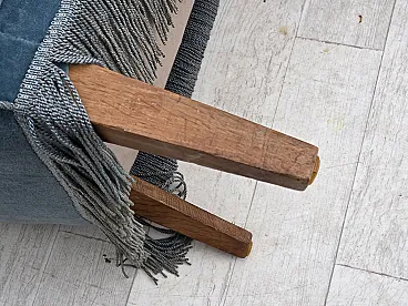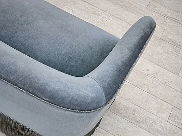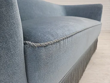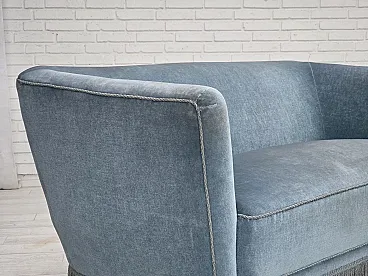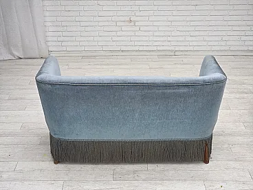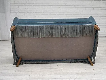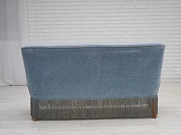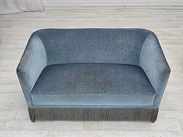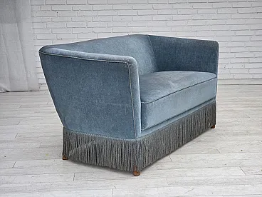 Divano danese a 2 posti in velluto blu, gambe in quercia, Anni '70