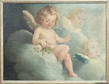 Coppia di dipinti olio su tela raffigurante putti, '800