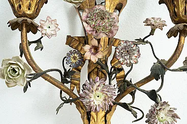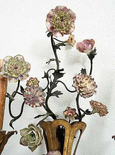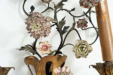 Coppia di applique Napoleone III in latta e porcellana policroma, '800