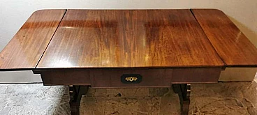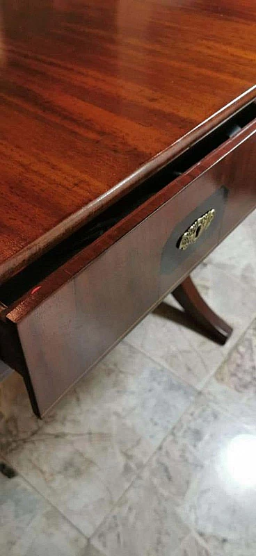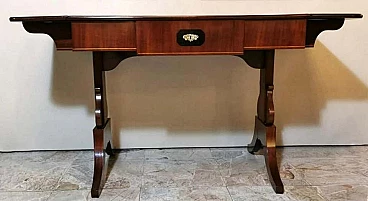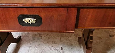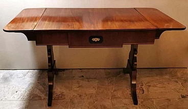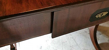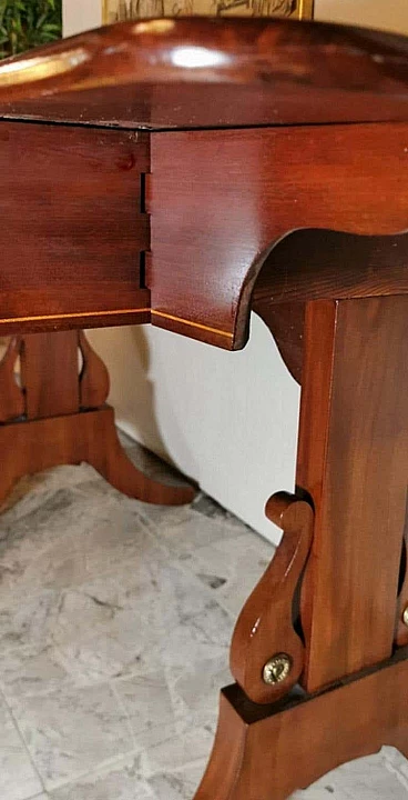 Tavolo da scrittura Biedermaier in mogano e intarsi in legno di betulla chiaro