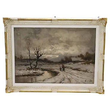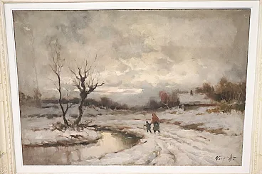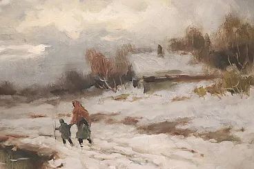Paesaggio invernale, olio su tela firma Karpoff, '900