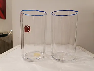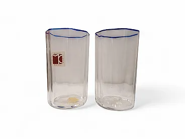 2 bicchieri in cristallo muranese filo blu di Carlo Moretti, anni '80