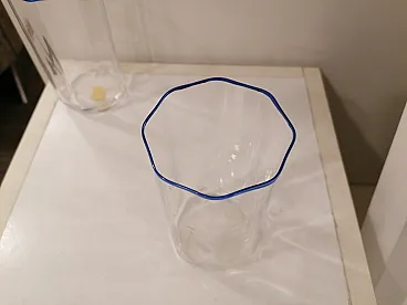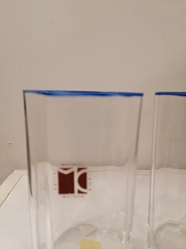 CARLO MORETTI - Bicchieri da acqua 2 raffinati bicchieri in cristallo muranese, sezione ottogonale con bordo decorato filo blu. Dimensioni: - altezza 12 cm - larghezza 7 cm