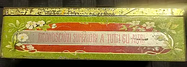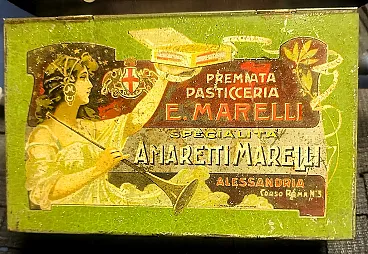 Scatola pubblicitaria in latta Biscotti Marelli, primi '900