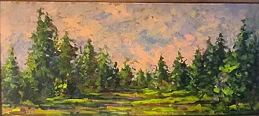 Quadro "Pineta di MONTE BALDO" olio su cartone - 1981 - ITALIA