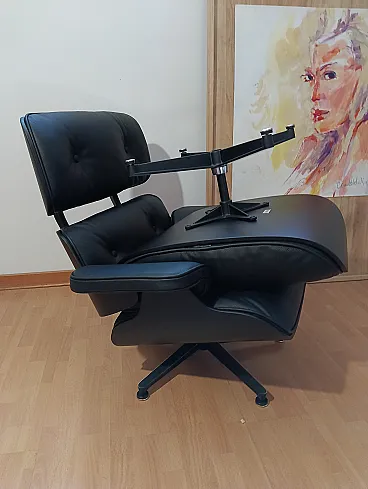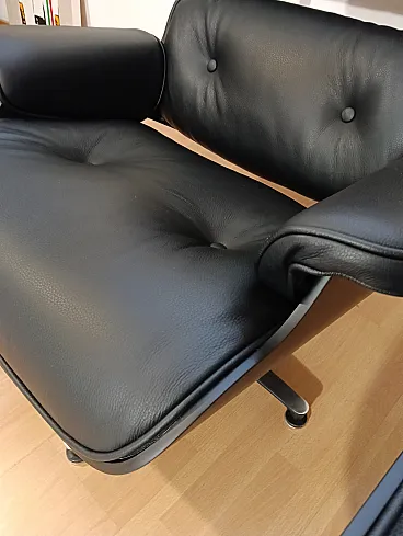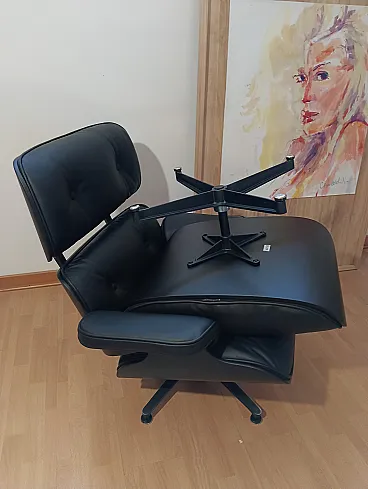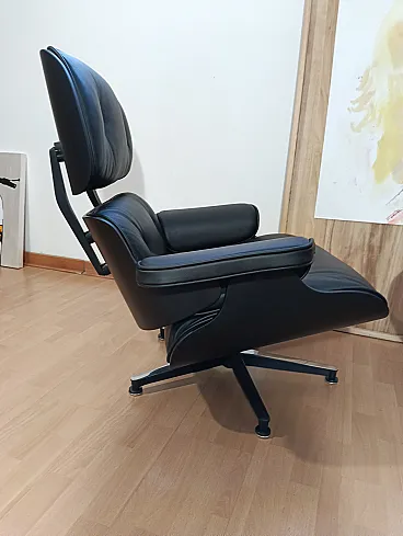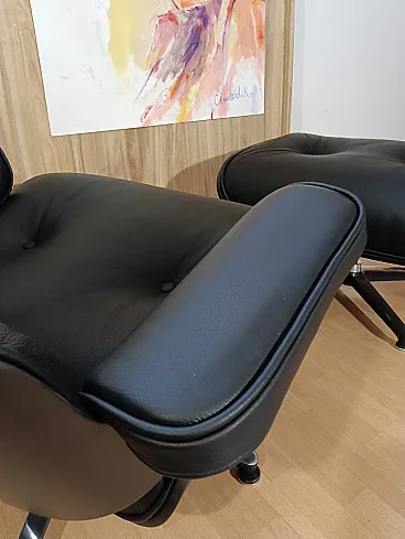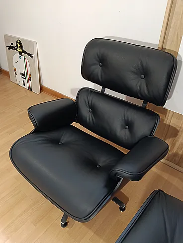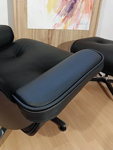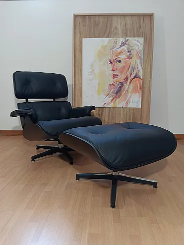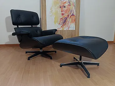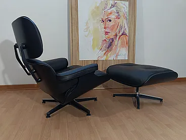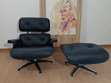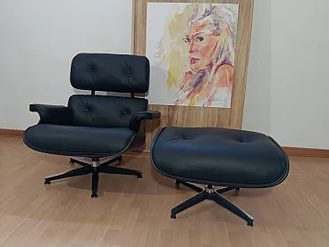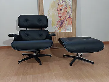 Poltrona e pouf in pelle di Charles & Ray Eames per Alivar, anni 2000