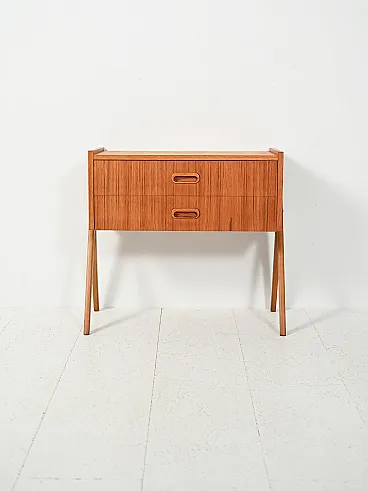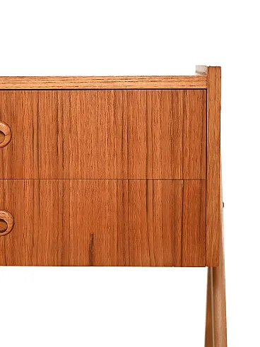 Comodino scandinavo in teak con due cassetti, anni Sessanta