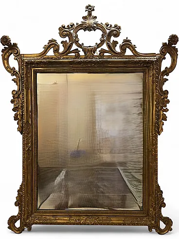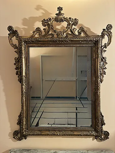 Specchiera Luigi Filippo in legno dorato e intagliato, '800