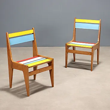 Coppia di poltroncine in faggio con inserti in formica colorata, '900