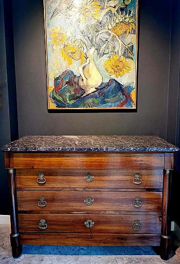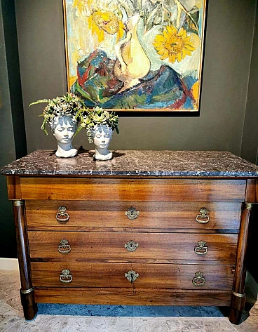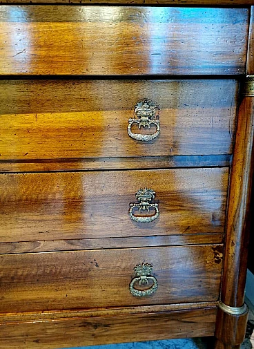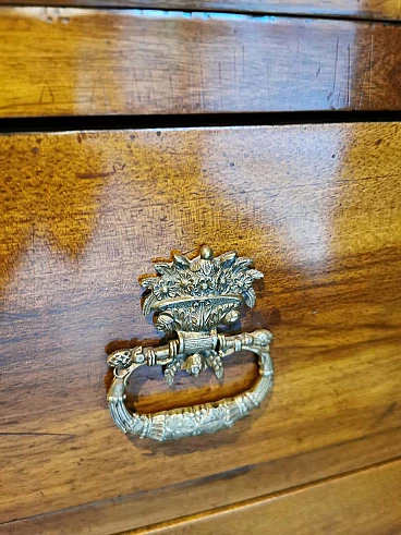Cassettiera Tardo Impero in noce con maniglie in bronzo