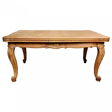 Tavolo da pranzo Provenzale allungabile in legno di faggio grezzo, anni '10