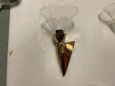 Coppia di applique in vetro di Murano in ottone, anni '80