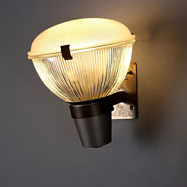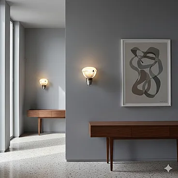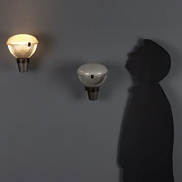 Coppia di appliques con montatura in ottone e diffusore in vetro, '900