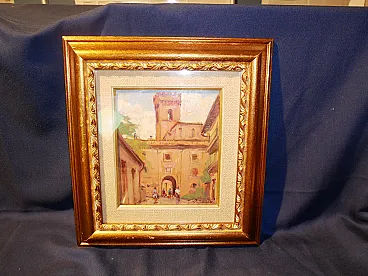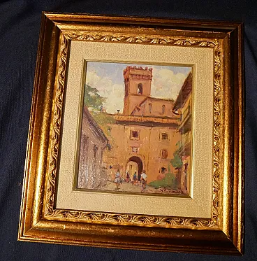 Dipinto ad olio borgo antico, anni '50