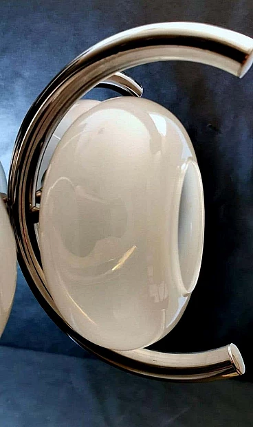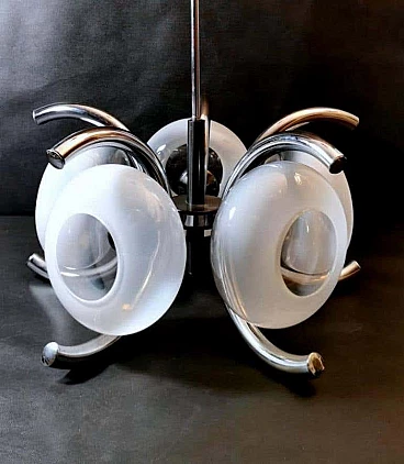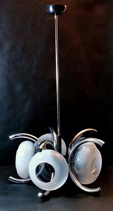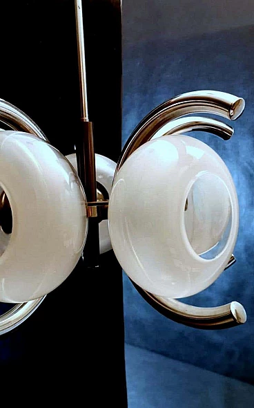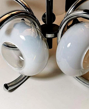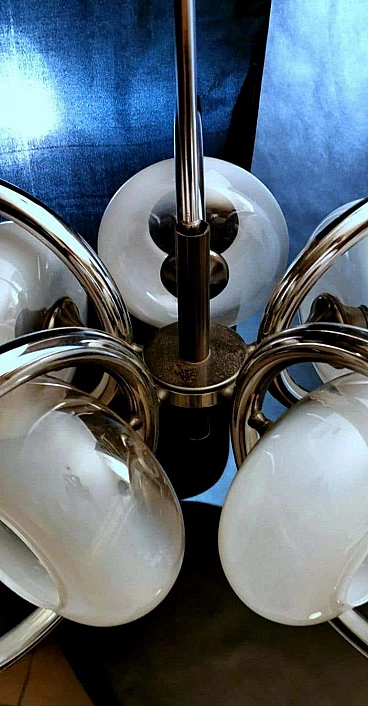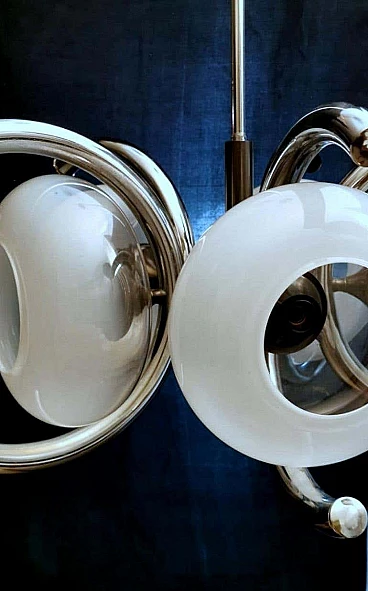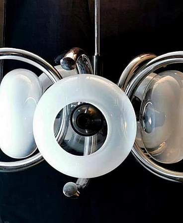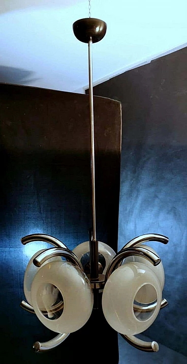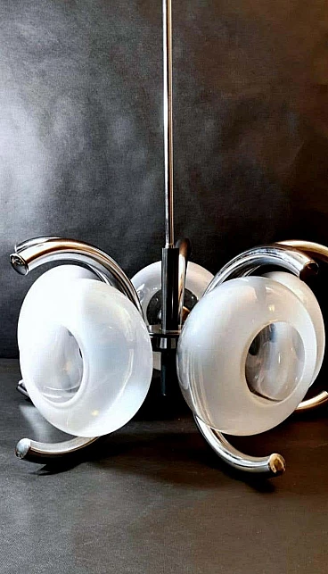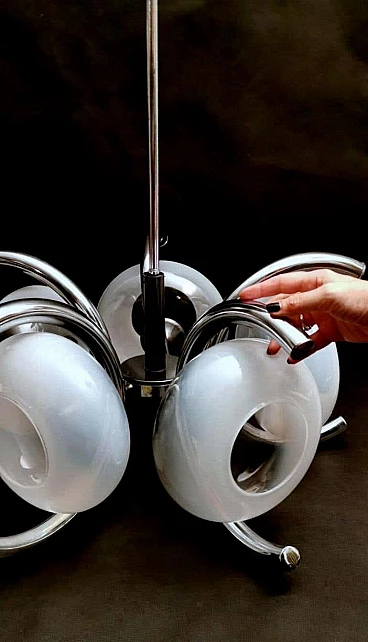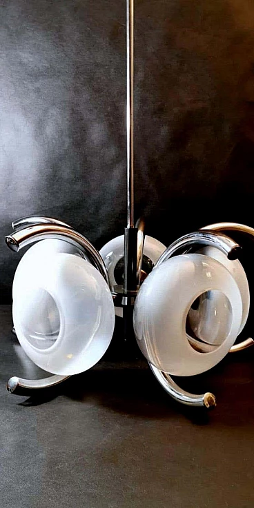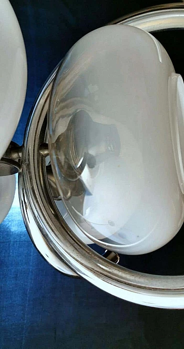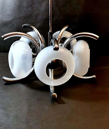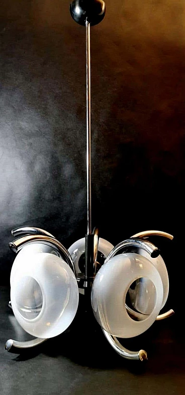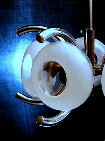 Lampadario in vetro opalino e acciaio in stile Goffredo Reggiani, anni '70