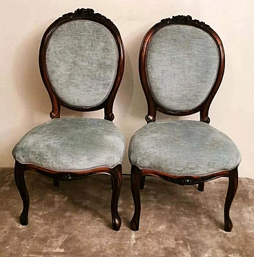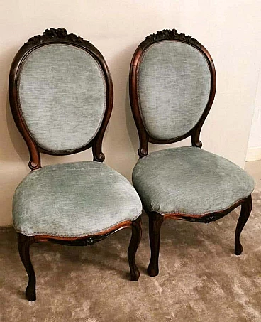 Coppia di sedie da camera da letto Napoleone III in mogano scolpito