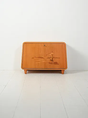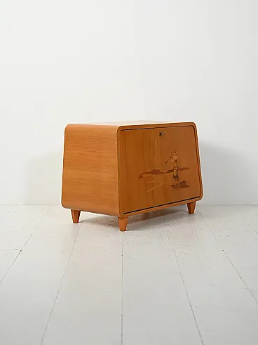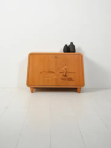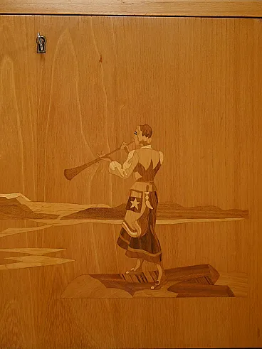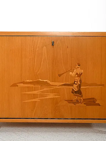 Cabinet scandinavo in olmo intarsiato, anni '40
