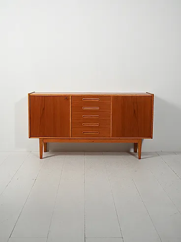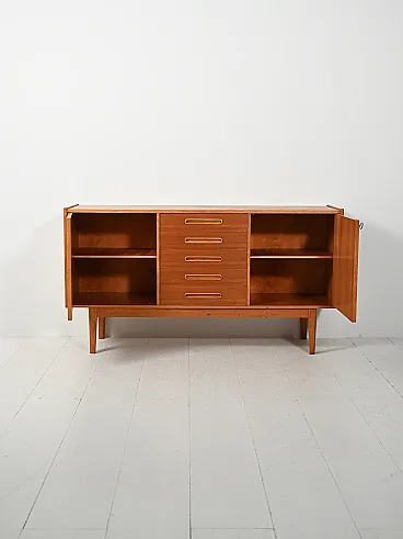 Credenza scandinava con maniglie intarsiate, anni ’50