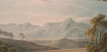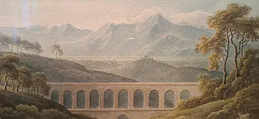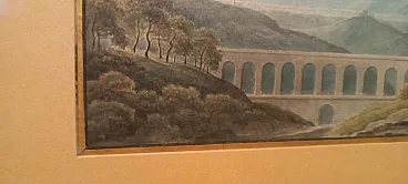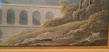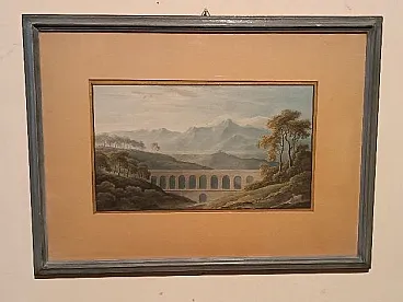 Paesaggio con acquedotto e ponte, acquerello su carta, primo '800