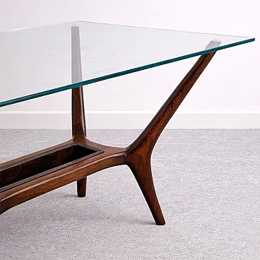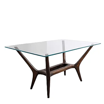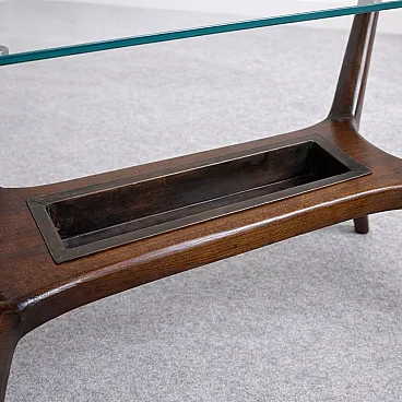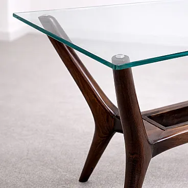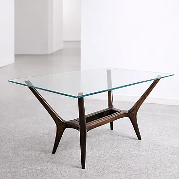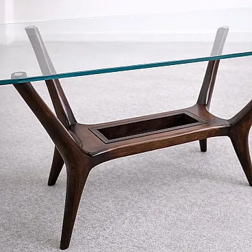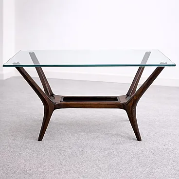 Tavolo da caffè in legno e vetro italiano in stile Ico Parisi, anni 60