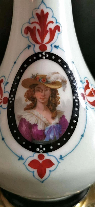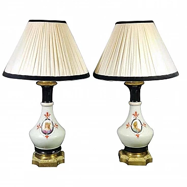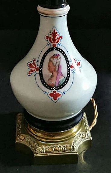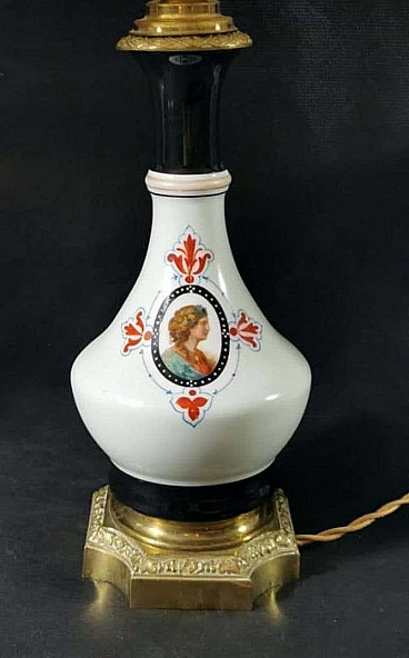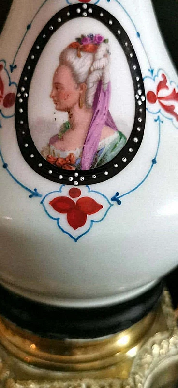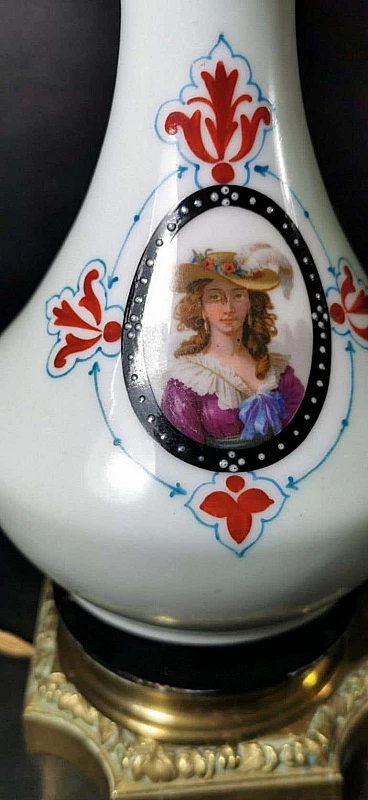 In origine queste lampade erano ad olio, nel tempo il meccanismo con lo stoppino è stato modificato per elettrificarle e dare loro un altro scopo estetico. Le finiture sono in bronzo dorato che il tempo ha leggermente invecchiato, ma reso più interessante. Il corpo è in fine Porcellana di Parigi. Le eccezionali decorazioni, cammei con teste di donne dell'epoca, sono interamente dipinte a mano con minuziosa attenzione ai dettagli. Le lampade hanno questi dipinti sul fronte e sul retro, quindi sono godibili a 360°. I pezzi sono stati realizzati tra il 1850 e il 1855. Le lampade sono fornite senza paralume, in modo che ognuno possa scegliere il colore in modo personale per abbinarlo al proprio arredamento. Attenzione, l'impianto elettrico è nuovo ma il cablaggio è europeo, la compatibilità della tensione in altri stati deve sempre essere verificata da un elettricista prima dell'uso.