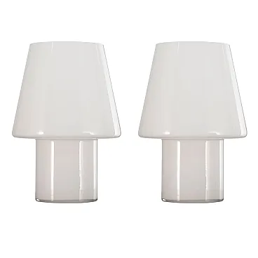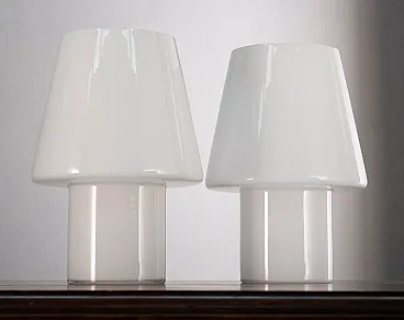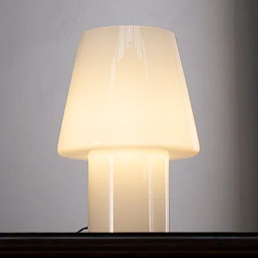 Set di 2 lampade a fungo in vetro di Murano bianco altezza 25 cm, Made in Italy. Lampada da tavolo dal design italiano.