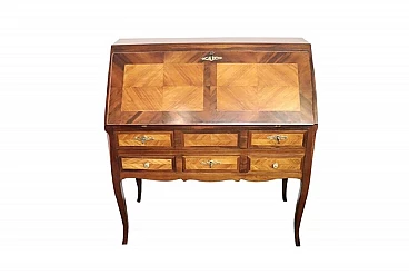 Raffinata ribalta antica in perfetto stile Luigi XV realizzata intorno alla metà del Secolo XIX. Di chiero gusto genovese lastronata in legni pregiati di acero e noce. Il piano a ribalta diventa un comodo scrittoio con un segreto interno. La ribalta è restaurata perciò in perfette condizioni pronta per essere collocata nelle vostre abitazioni. Prezzo trattabile inviate pure la vostra proposta di acquisto. MISURE IN POLLICI H 40.56 in. x W 38.19 in. x D 17.72 in. MISURE IN CM H 103 cm x W 97 cm x D 45 cm