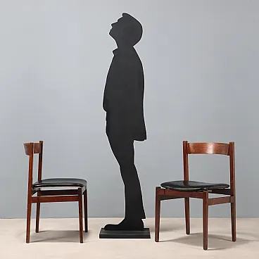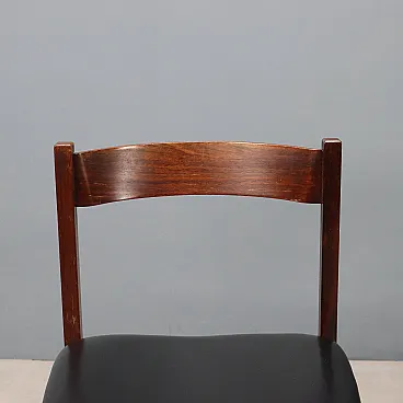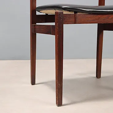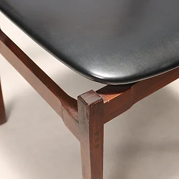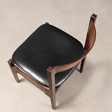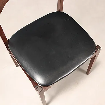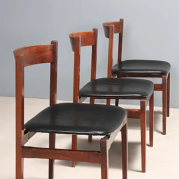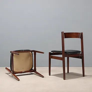 Set di sedie da pranzo con struttura in legno di jacaranda, seduta in espanso con rivestimento in pelle originale del periodo. Presente il marchio della manifattura.