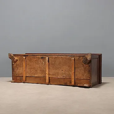 Cassapanca in noce. Fronte con applicazione di intaglio floreale centrale e lateralmente intaglia a girali. Piedi a mensola. Modifiche. Italia, fine XVIII Secolo.