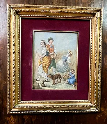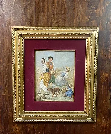 Scena contadina, olio su legno, metà '800