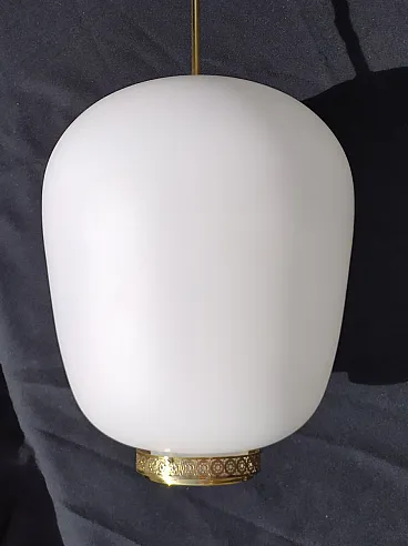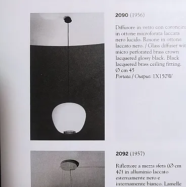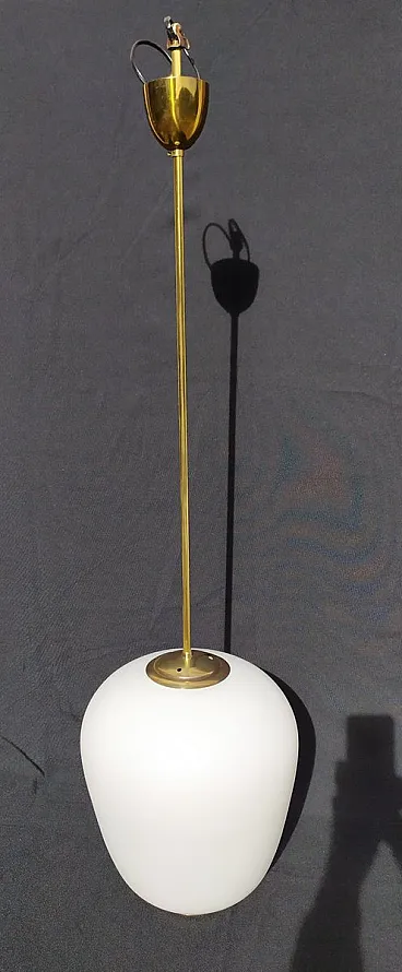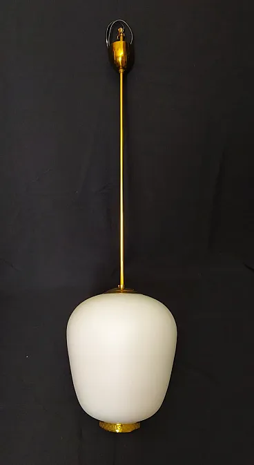 Lampadario in vetro e ottone di Gino Sarfatti per Arteluce, anni '50