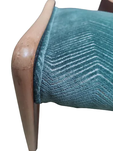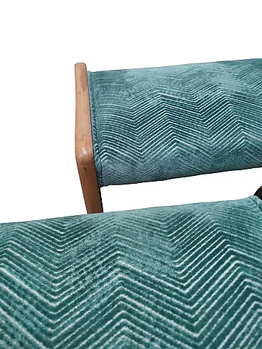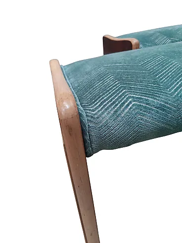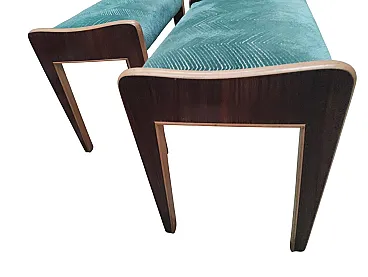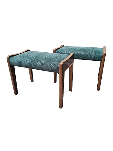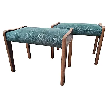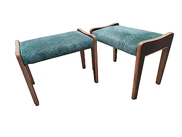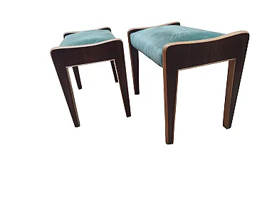 Coppia di panchetti impiallacciati in noce e velluto, anni '50