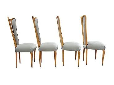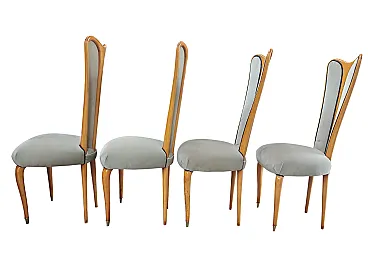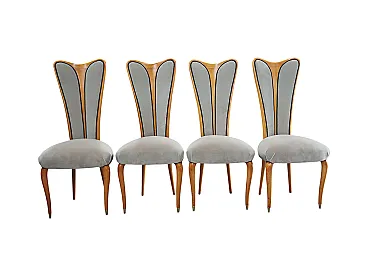 4 sedie in legno di faggio e tessuto, anni '60