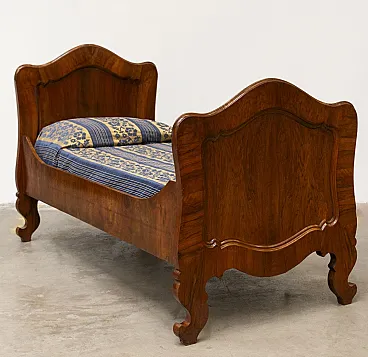Letto in stile Biedermeier lastronato e impiallacciato in noce, '800