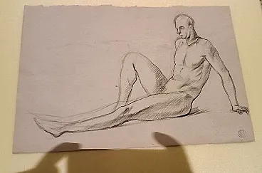 3 Nudi maschili, disegni a matita su carta, '900 2
