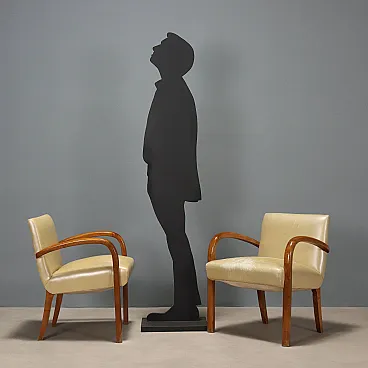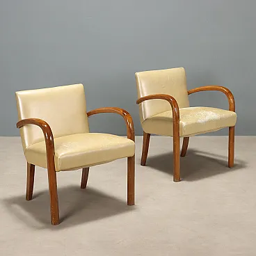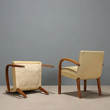 Coppia di poltrone con braccioli in faggio e vinile, '900