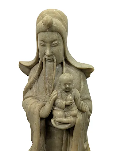 Statua orientale in pietra saponaria Fu Xing, anni 60-70