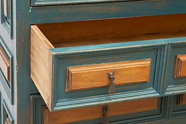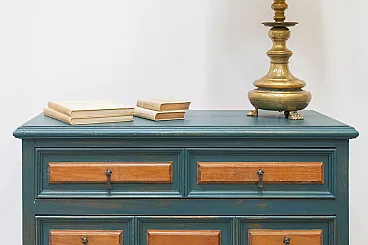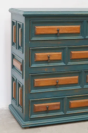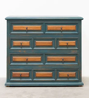 Cassettiera in abete e maniglie in ferro antichizzato, '900