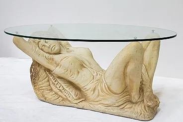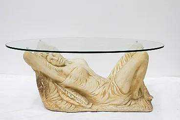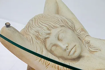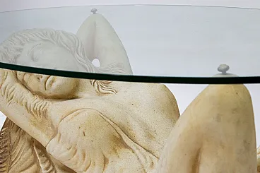 Tavolino in vetro con base in finta pietra, '900