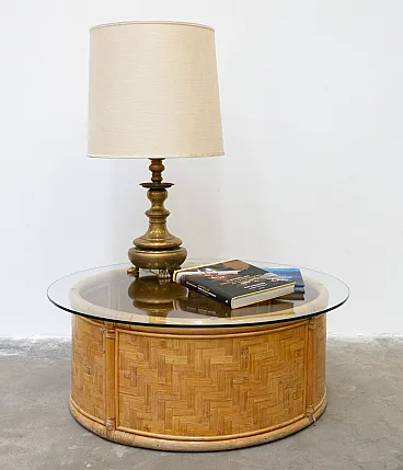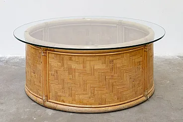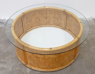Tavolino contenitore rotondo in bambù e vimini, '900