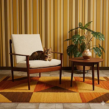 Poltrona con struttura in legno di teak a vista, '900