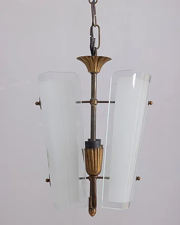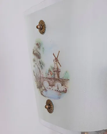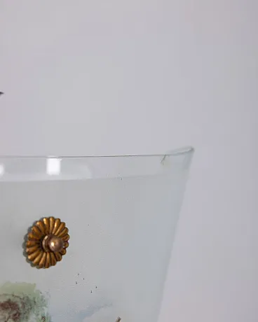 Lampada a sospensione in vetro decorato, anni '50