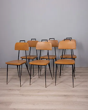 6 Sedie in metallo e pelle, anni '60