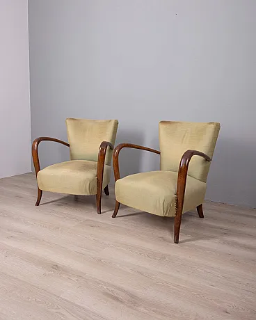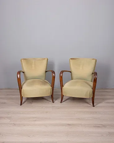 Coppia di poltrone in legno e tessuto, anni '50