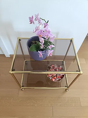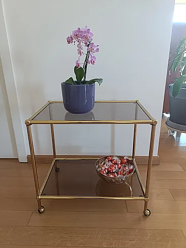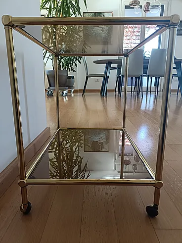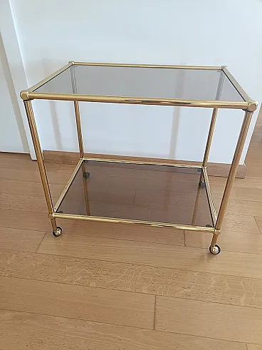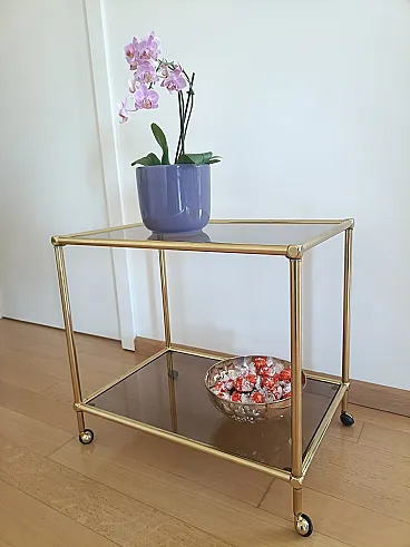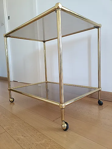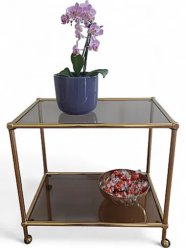 Carrello Bar in ottone e cristallo fumé di Regen, anni '70