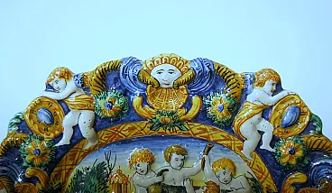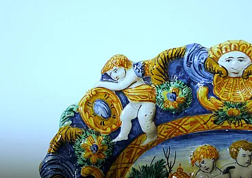 Piatto in maiolica con decorazioni in rilievo, '700