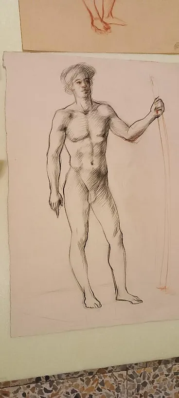 Nudi maschile e femminile, disegni a matita, metà '900