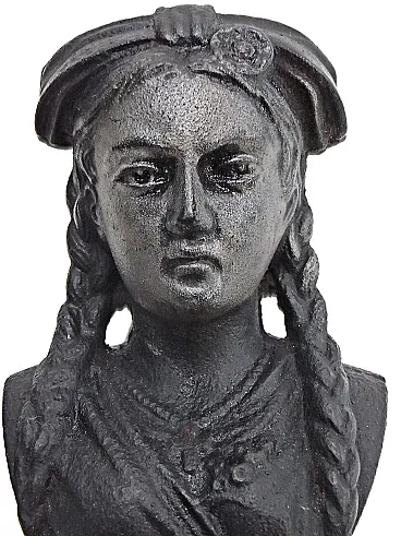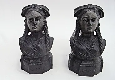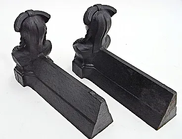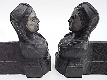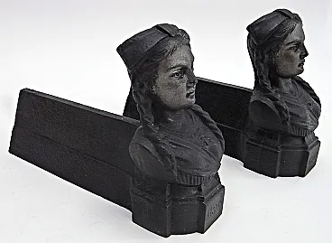 Coppia di Tridenti da camino con testa femminile in ghisa, anni '50